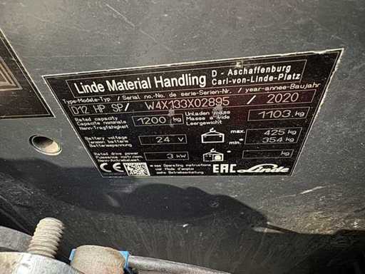 2020 S+UVV 02/2027 Linde D12HPSP 1.200kg Camion Pallet Iniziale di Sollevamento 4.619 Ore