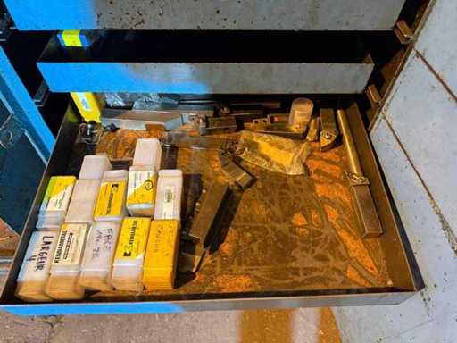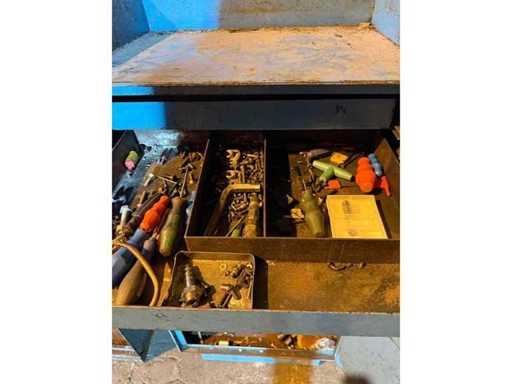 Armadio degli utensili in metallo con cassetti – inclusi vari utensili e parti per la lavorazione lavorativa