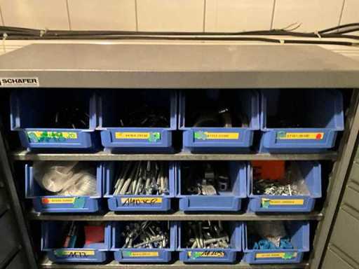 Armadio metallico grigio Schäfer Shop – all'interno 9 scaffali, 158 × 67 × 27 cm con contenuti – parti standard, vedi immagine