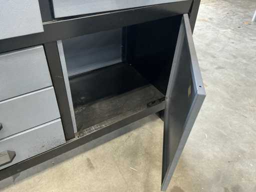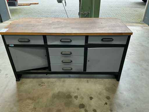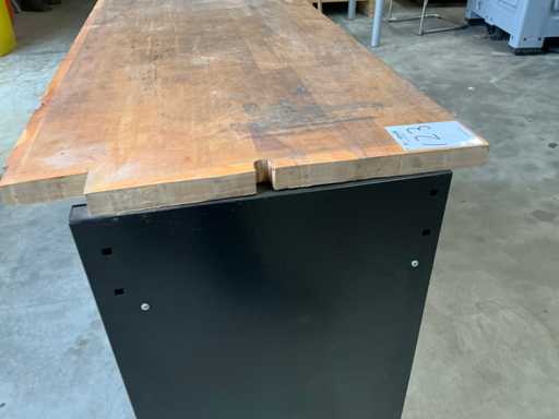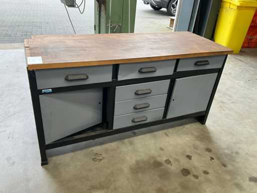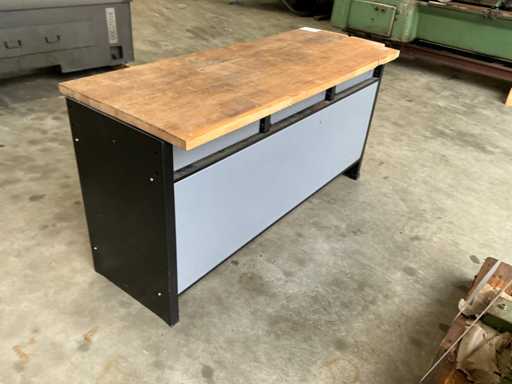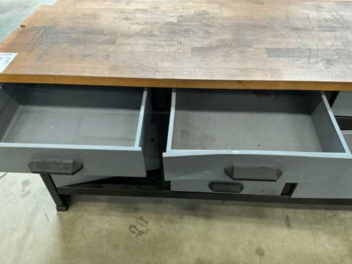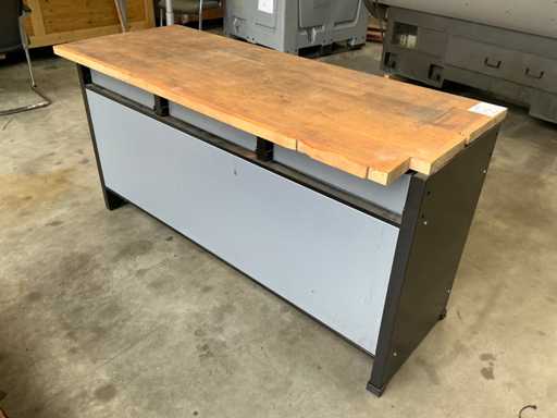 - Acciaio con piano di lavoro in legno massiccio spesso 3 cm