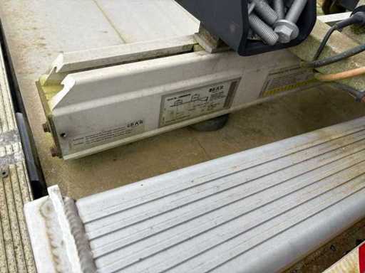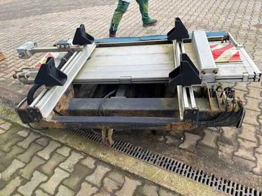 Secondo la targa, la capacità massima di carico è fino a 1.500 kg, a seconda del centro di carico e della posizione di sollevamento. L'unità comprende la piattaforma, i bracci di supporto, l'unità di potenza idraulica, il cilindro idraulico, la scatola di controllo, le linee e la struttura di montaggio, tra le altre cose.
