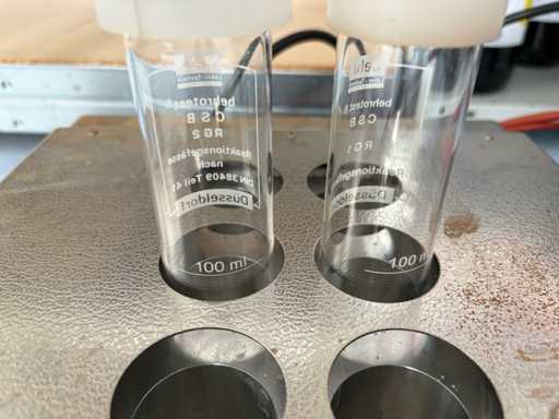 Il blocco riscaldante ha sei supporti per recipienti di reazione da 100 ml. I contenitori di reazione Behr corrispondenti secondo DIN 38409 Parte 41, così come altri tubi di vetro, sono inclusi nell'ambito di consegna. L'unità di controllo offre la selezione di ora, temperatura e programma tramite un'interfaccia utente digitale. I pulsanti rispondono e le luci indicatori funzionano, ma non è stato eseguito un test completo di funzionamento.