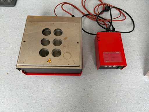 In vendita è disponibile un sistema di riscaldamento da laboratorio Behrotest ET2 di Behr Labor-Technik, composto dall'unità di controllo elettronica ET2 e da un solido blocco riscaldante a sei pale in acciaio inossidabile. Il dispositivo viene utilizzato per riscaldare ed eseguire reazioni chimiche e processi di digestione, come è comune nei laboratori ambientali, alimentari e analitici.