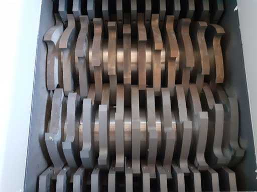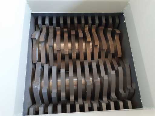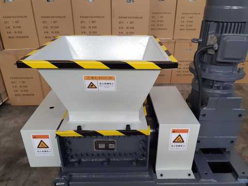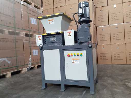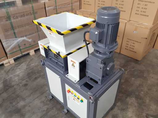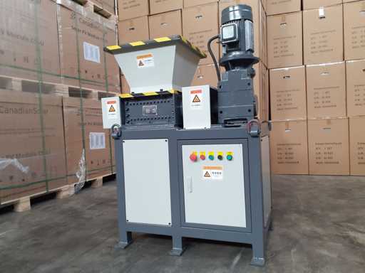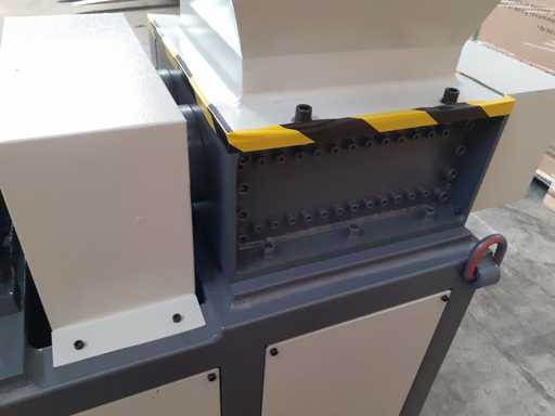 Trituratore bialbero, alimentazione 380 volt, ideale per plastica, legno, trucioli ferro, carta. Bocca di carico 620 x 570 mm, area di lavoro 350 x 300 mm, mai usato 0 ore