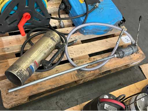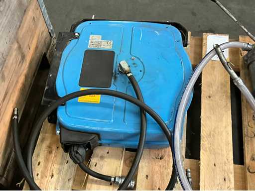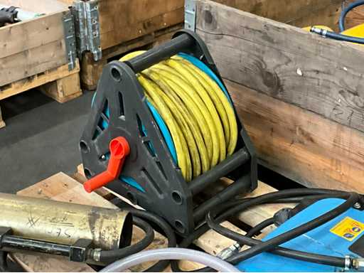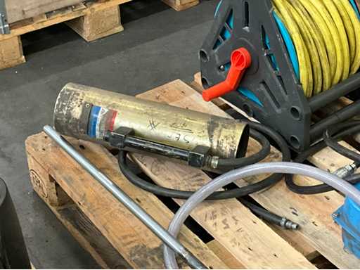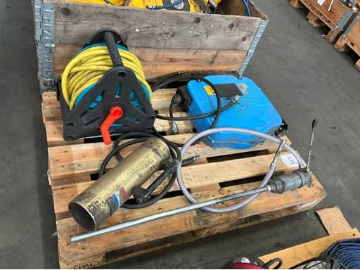 tra cui: bobina per tubo d'aria; pompa manuale a canna; bobina per tubi da giardino; inclusi pallet box;