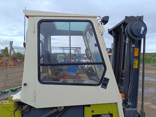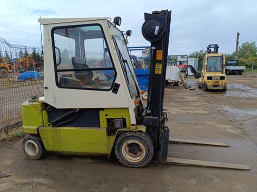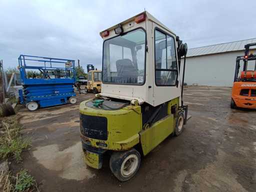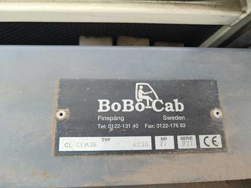 Carrello elevatore elettrico BoBo-Cab CL CEM35 dalla Svezia. Dotato di cabina chiusa per l'operatore, comandi idraulici e traliccio doppio. Ideale per applicazioni interne o in magazzino. Condizioni della batteria - non funzionano