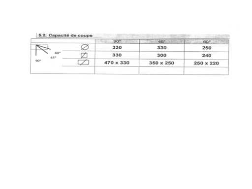 - Capacità di taglio a 90, proiettili approssimativamente: 330mm