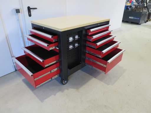 Il carrello degli attrezzi è dotato di 10 cassetti e un mobile con 2 porte.