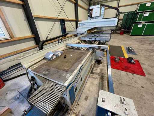 CNC Settimana Homag; 6,00 m sull'asse X; inclusi accessori ricchi come fresatrici; seghe; utensili girevoli; ecc. Poi ci sono alcune viti controllate; molti aspiratori di materiale / tampine di aspirazione. Il mandrino principale è stato rinnovato una volta. È stato anche aggiornato il software. Supporti inutilizzati per circa 6 mesi.