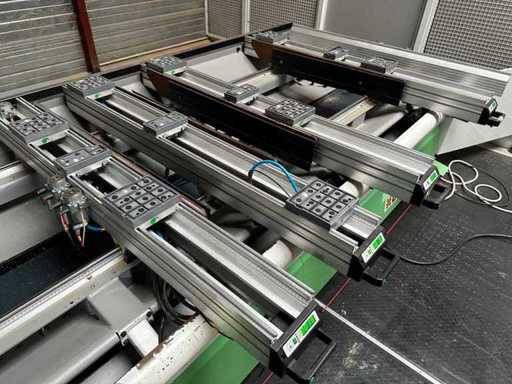 Centro di lavorazione BIESSE a 3 assi, dotato di un caricatore con 7 scanali per mandrini e un diametro massimo di 160 mm. Tutte le misurazioni sono fotografate nella documentazione tecnica. Consulta le foto per tutte le informazioni tecniche. Il Rover 30 è dotato di un tappetino di rilevamento per garantire la sicurezza dell'operatore durante l'uso, una pompa a vuoto RIETCHIE MACRO, Venduto con armadio di comando, mobile in legno con contenuti, carrello di supporto del mandrino, banchi da lavoro a rote.