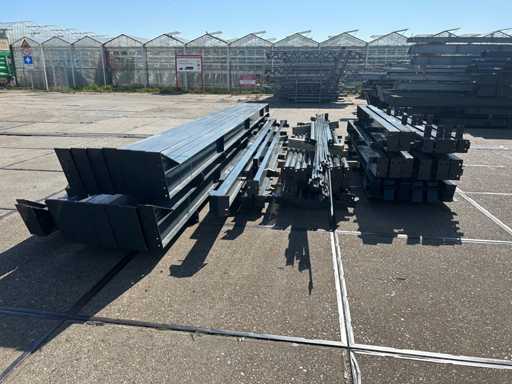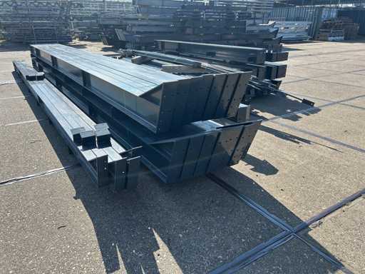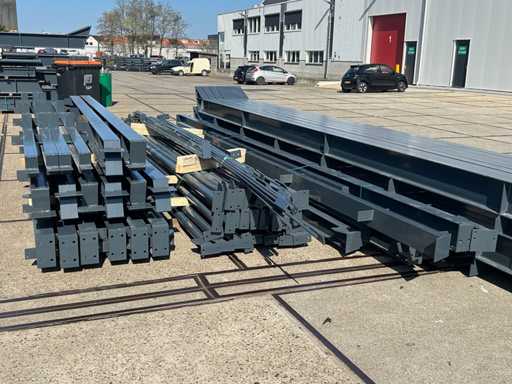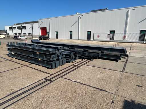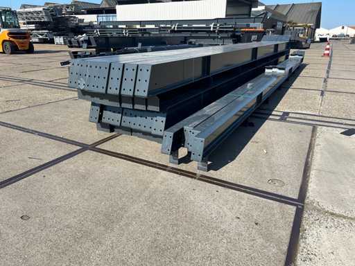 produzione olandese; apertura libera; travi C.O.H. 5000mm; calcoli sull'acciaio; disegni in acciaio; disegni di assemblaggio; piano di ancora; acciaio numerato secondo il piano di assemblaggio; pendenza del tetto di 20 gradi; 7 set di travi intermedie IPE 270; 2 set di travi IPE 180 con montanti di vento, 1 dei quali dotato di una rientranza per la porta; dotata di tubi a pressione; rinforzamento del vento; labbra a forma di purlino; dadi e bulloni; ancoraggi di scarica; costruzione in acciaio secondo lo standard di prodotto EN1090 (certificato disponibile dopo acquisto); il parcheggio è ordinatamente pronto per il trasporto e deve essere prelevato con 1 rimorchio; Il lotto è caricato gratuitamente con un carrello elevatore