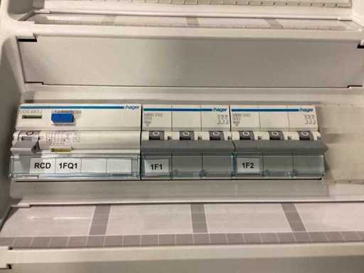 Distributore elettrico Hager 68 cm di altezza x 30 cm di larghezza, equipaggiato con macchine automatiche Hager CDC463J e MBM 332 B32 e ADS 916D
