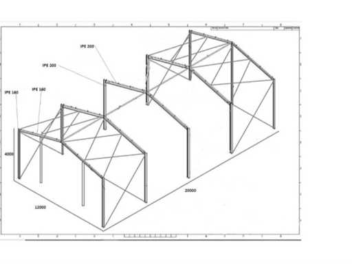 - 3 intermediate beams (trusses) made of IPE 200 profile