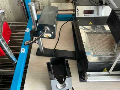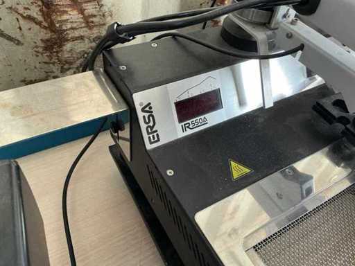 Testa di riscaldamento IR nera con simboli di avviso ad alta temperatura. Questo viene tipicamente utilizzato per il riflow durante il riwork SMD.