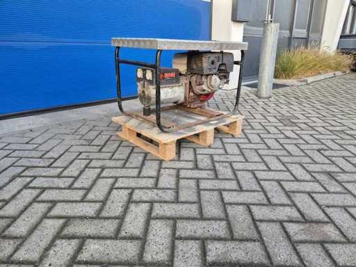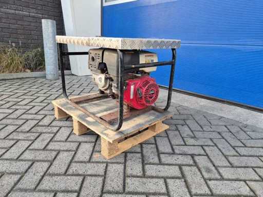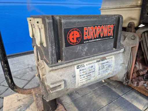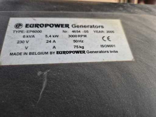 Gruppo elettrogenerante a benzina Europower EP6000; potenza 6 kVA; 2 collegamenti da 230 V; motore: Honda GX390, 13 CV; Peso circa 75 kg.