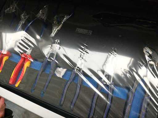 Danni al trasporto al carrello, attrezzi senza danni e completi