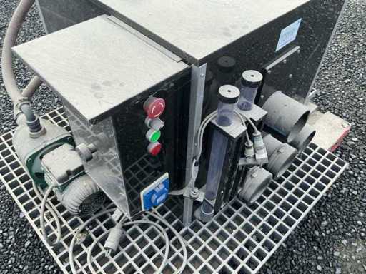 Un setaccio in HDPEin acciaio inox 316, setaccio di apertura di diametro, controller digitale e pompa di scaricoDAB max 30.000 litriall'oraprogrammabili digitalmente può essere utilizzato sia a gravità che a pompa