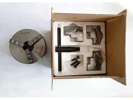 3 UNITÀ/SET DI ATT0029 IMPACCHETTATI INSIEME. UN SINGOLO ATT0029 CORRISPONDE A: mandrino per tornio autocentrante 3 + 3 ganasce 160 mm, 2500 r/min, corpo in ghisa levigata, chiusura con anello elicoidale, serraggio manuale concentrico, ganasce temprate