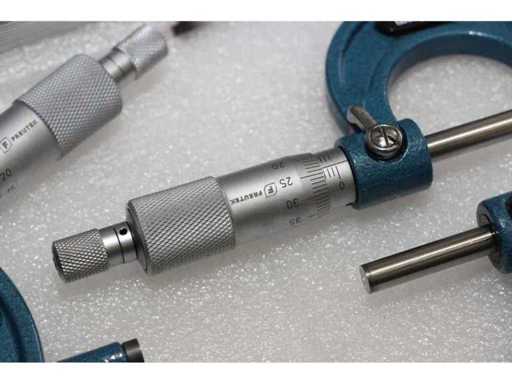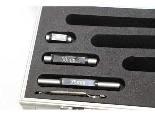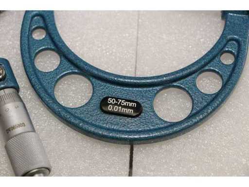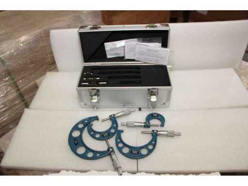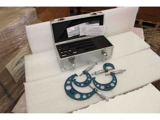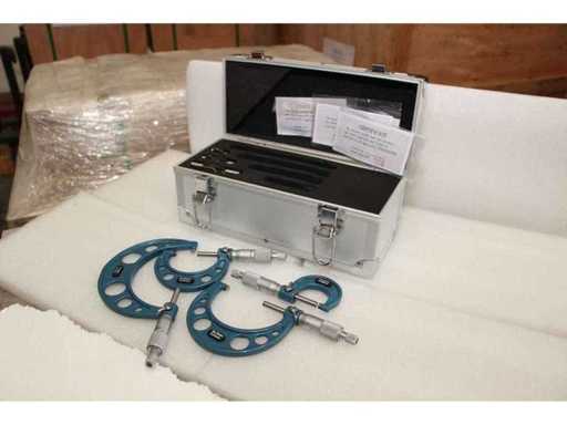 2 UNITÀ/SET DI SDM0054 IMPACCHETTATI INSIEME. UN SINGOLO SDM0054 CORRISPONDE A: Set composto da 4 micrometri centesimali per misurazioni da 0 a 100 mm. Misure: 0-25mm; 25-50mm; 50-75mm; 75-100mm. Certificato incluso