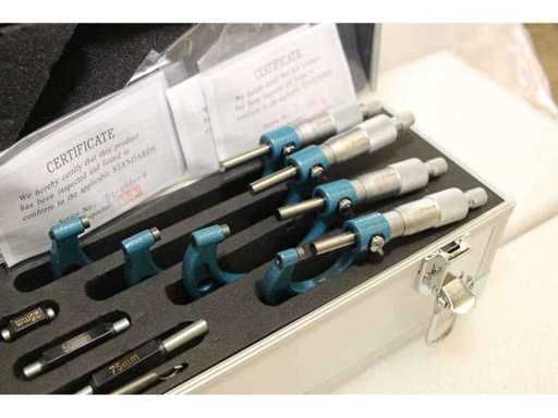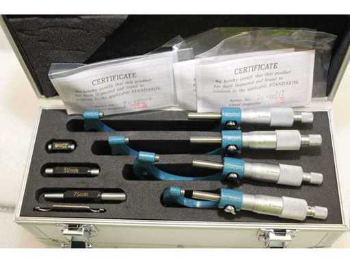 2 UNITÀ/SET DI SDM0055 IMPACCHETTATI INSIEME. UN SINGOLO SDM0055 CORRISPONDE A: Set composto da 4 millesimi di micrometro per misurazioni da 0 a 100 mm. Misure: 0-25mm; 25-50mm; 50-75mm; 75-100mm. Certificato incluso