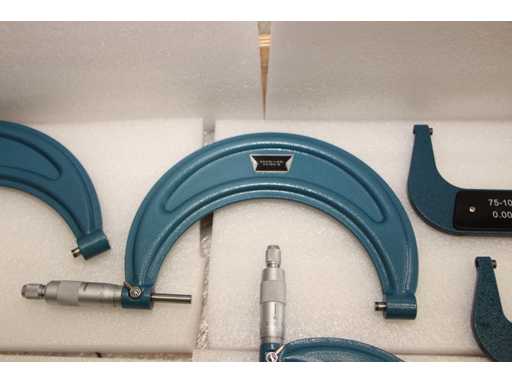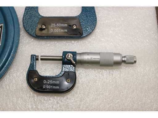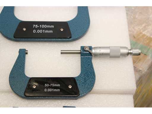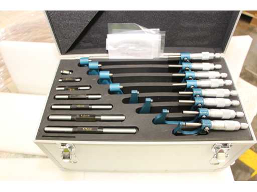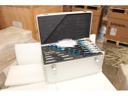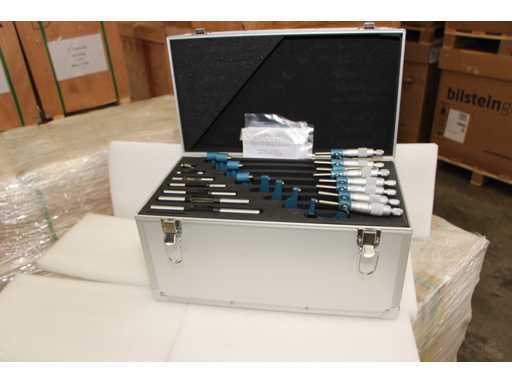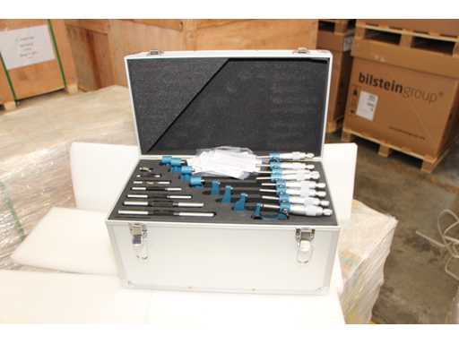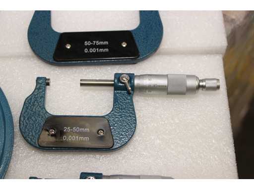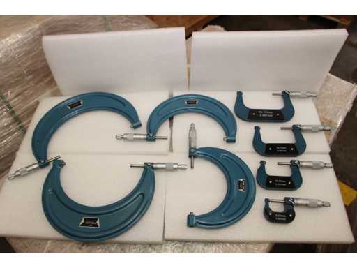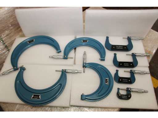 Set composto da 8 millesimi di micrometro per misurazioni da 0 a 200 mm. Misure: 0-25mm; 25-50mm; 50-75mm; 75-100mm; 100-125mm; 125-150mm; 150-175mm; 175-200mm. Certificato incluso