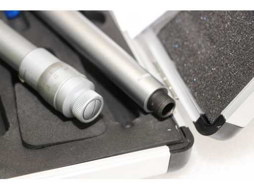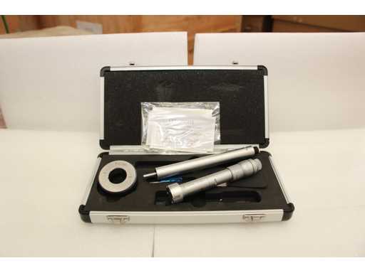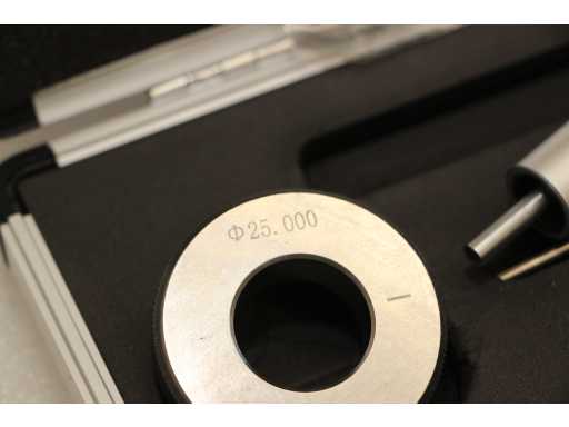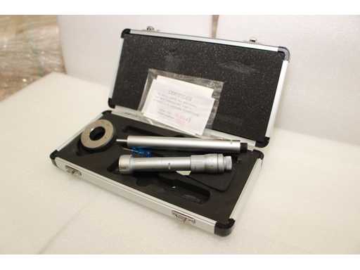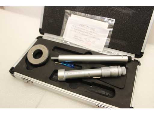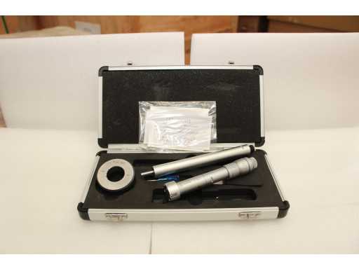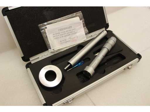 Micrometro a tre punti per misurazioni interne da 25 a 30 mm. Diametro 17 mm, profondità fino a 85 mm, altezza delle punte di misura 8,8 mm. Anello di calibrazione da 25 mm incluso. Precisione 4 um, risoluzione 0,005 mm. Certificato incluso