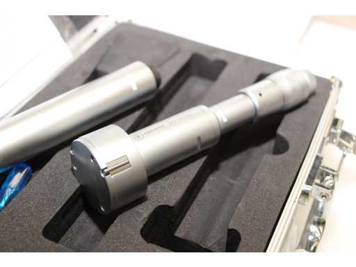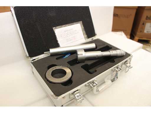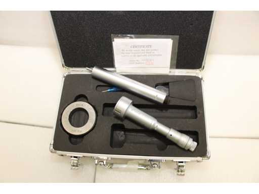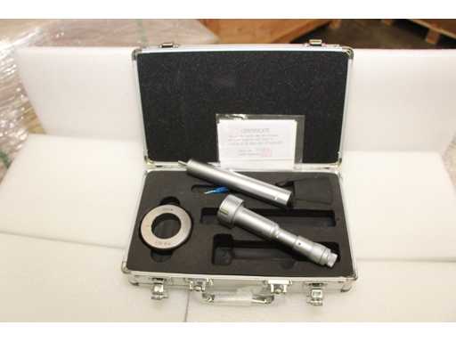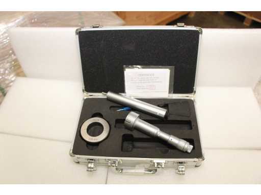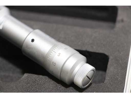 Micrometro a tre punti per misurazioni interne da 40 a 50 mm. Diametro 23,5 mm, profondità fino a 100 mm, altezza delle punte di misura 12,8 mm. Anello di calibrazione da 40 mm incluso. Precisione 4 um, risoluzione 0,005 mm. Certificato incluso