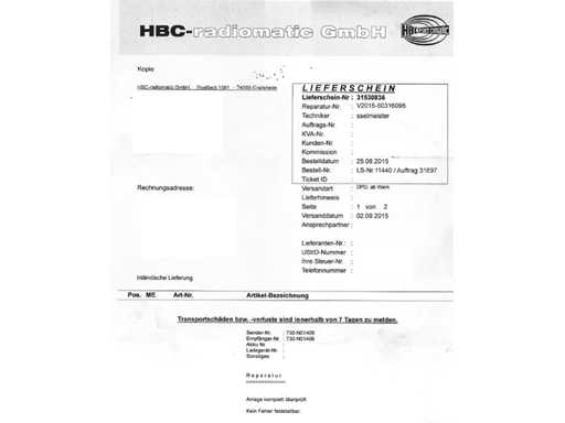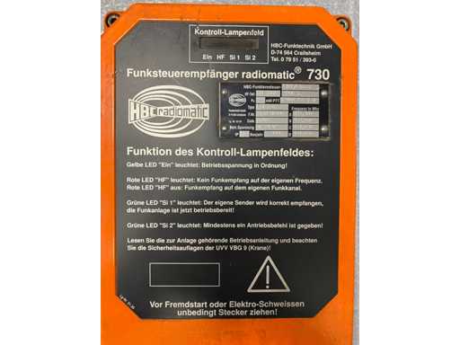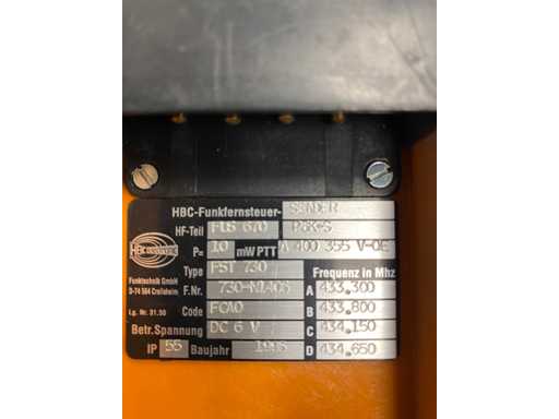 Il trasmettitore e il ricevitore sono stati testati dalla HBC nel 2015 senza alcun errore. Purtroppo, ora manca un joystick. Il sistema risale al 1995 ed è stato montato su una gru HIAB.