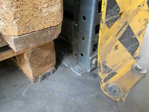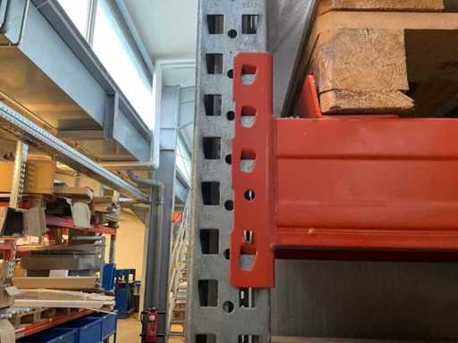 Scaffale resistente composto da: 2 supporti di circa 1100x3300mm, 6 travi di circa 3600mm, inclusi i supporti per pallet, con contenuto
