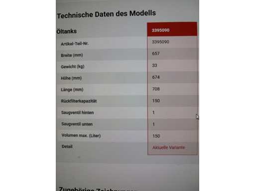 Serbatoio olio da 150 litri (filtro piccolo) Numero articoli Hiab: 3395090