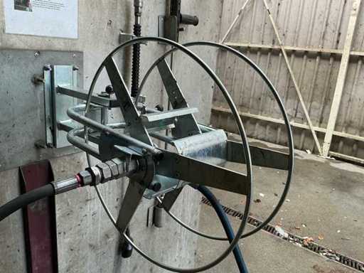 Equipaggiato con bobina per tubi aperti, tubo da 20 metri, pistola spray e 2 lance spray per spruzzare.