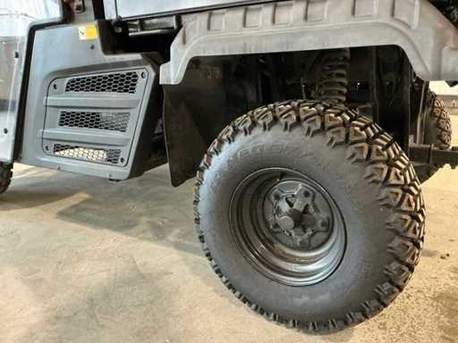 Equipaggiato con motore diesel 3 cilindri, 4x4, abitacolo chiuso, doppie porte, finestrini scorrevoli, finestrino anteriore pieghevole, illuminazione, specchietti, sedile del guidatore, panca doppio passeggero, cambio vario, tergicristalli, bilanciere, barra di traino anteriore e posteriore, vano bagaglio inclinabile da 140 x 95 cm.