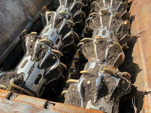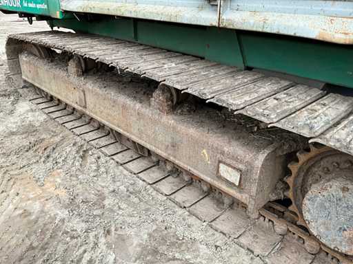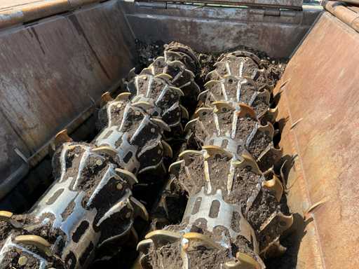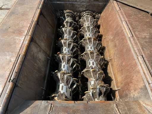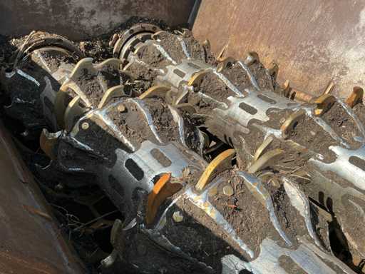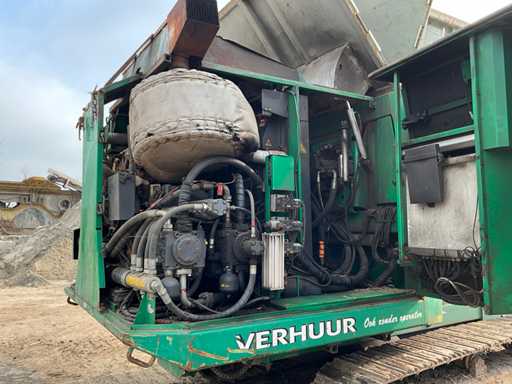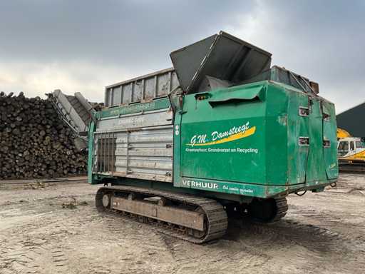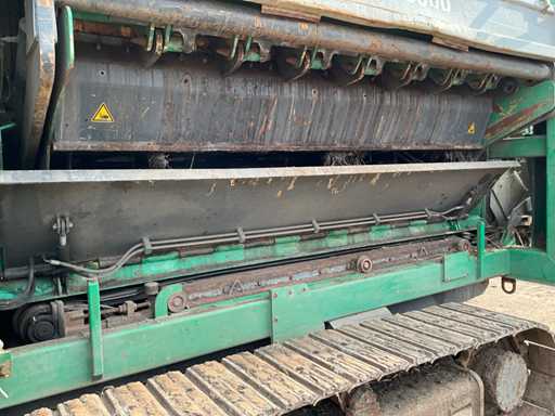 Si tratta di un trituratore a funzionamento lento, motore diesel Cat C18, ore leggibili a 738 ore, equipaggiato con 2 rulli HD da 67 denti ciascuno, cremagliere sostituibili, carrello di treno, larghezza di binario 500 mm, nastro magnetico, nastro di scarico, capacità fino a circa 100 T/ora, telecomando radio, tramoggia ricevente pieghevole, lubrificazione automatica del grasso, sistema di estinzione automatica, numero motore WJH07393.
