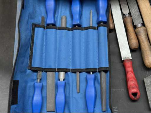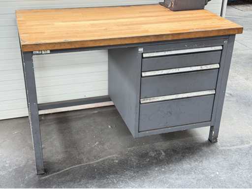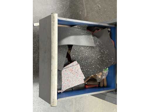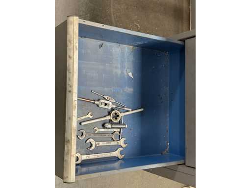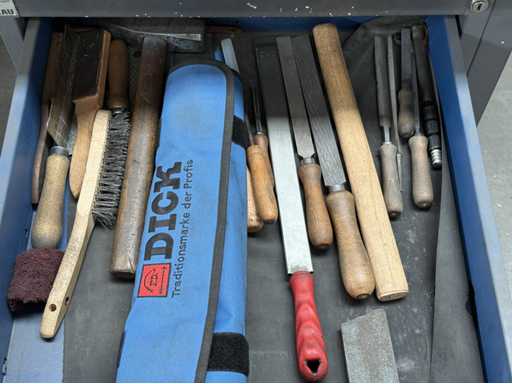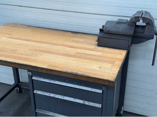 Larghezza circa 1250mm, dotato di morsa e cassetti: assortimento di utensili manuali, vedi le foto per maggiori dettagli