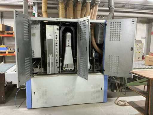 Spessore del pezzo: 3 - 160 mm, 3 unità di lavorazione: 1° nastro trasversale, 2° nastro longitudinale, 3° nastro longitudinale. Con nastro trasportatore a rulli circa 4900 x 1600 mm (larghezza rulli: circa 1400 mm), nastro trasportatore di fornitura VENJAKOB circa 2600 x 1500 mm (larghezza nastro: circa 1300 mm)