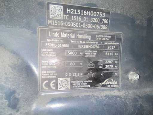 Linde - 2017 - E50HL-01/600 - duplex 5.0M, cambio laterale - Carrello elevatore