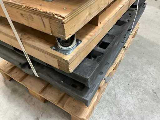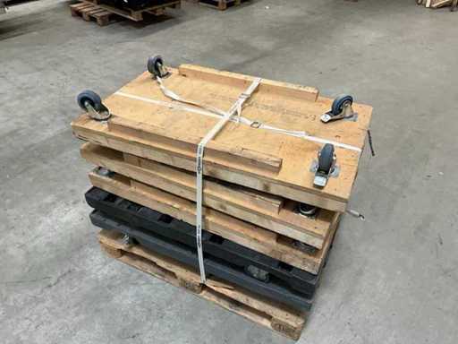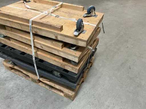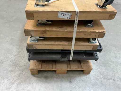 Lotto misto di carrelli circa 1200 x 800 mm, 3 x legno, 2 x plastica, tutti con ruote girevoli