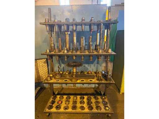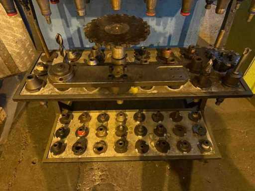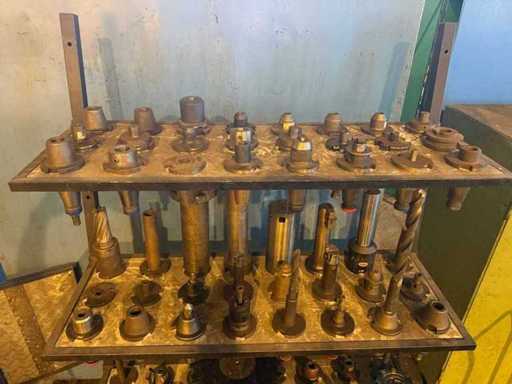 Descrizione: Set completo di mandrini CNC e portautensili di alta qualità, organizzati su una griglia pesante.
