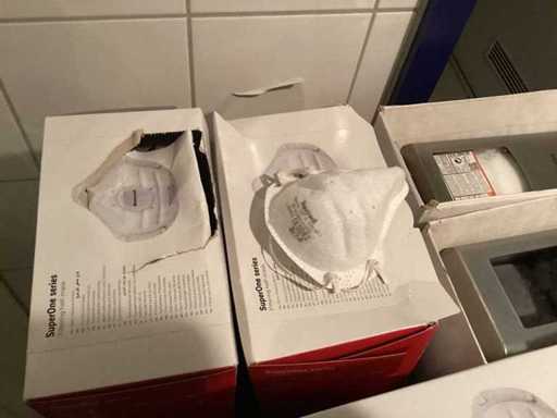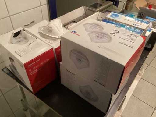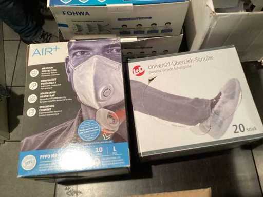 Non testata, maschere filtranti, maschere protettive, dispenser di lozioni per le mani, copriscarpe, disinfettanti