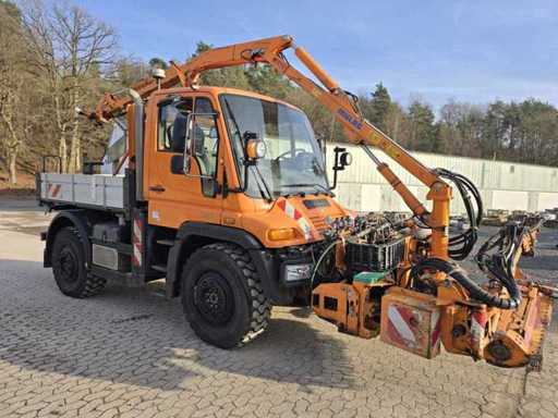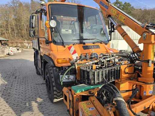 Mercedes-Benz Unimog U400 (Tipo 405/12 UGN) e Mulag MKM 700 tosaerba con tosaerba verge