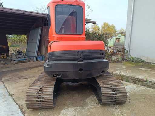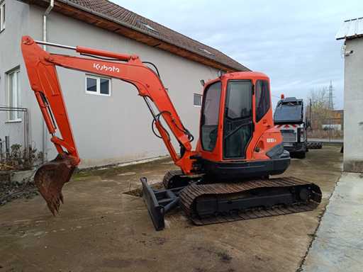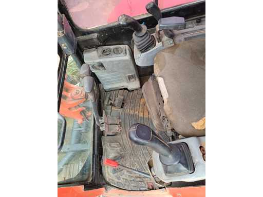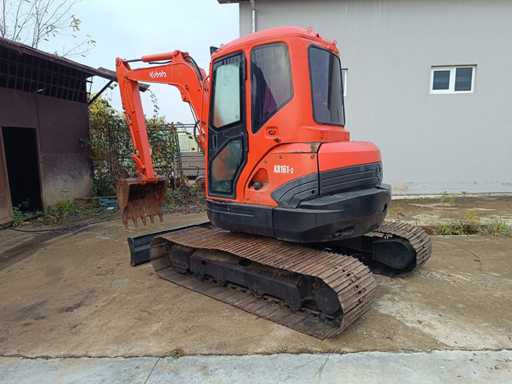 Mini escavatore Kubota KX161-3 in condizioni di funzionamento usato. Dotato di cingoli in acciaio, lama bulldozer e cabina chiusa. Modello affidabile e compatto, ideale per costruzioni, paesaggistica e lavori di utilità.