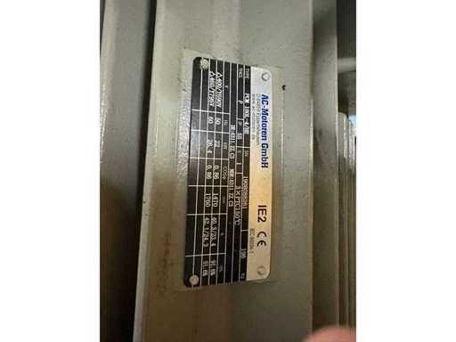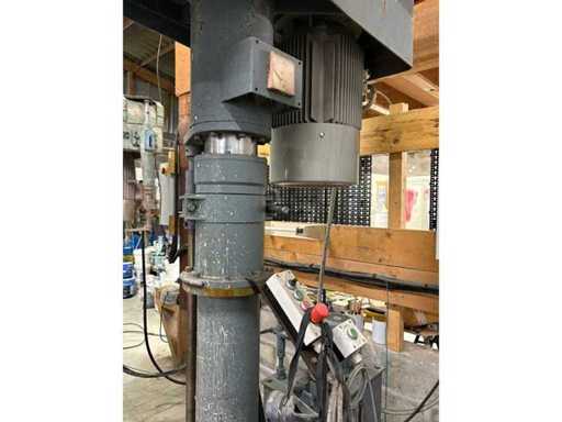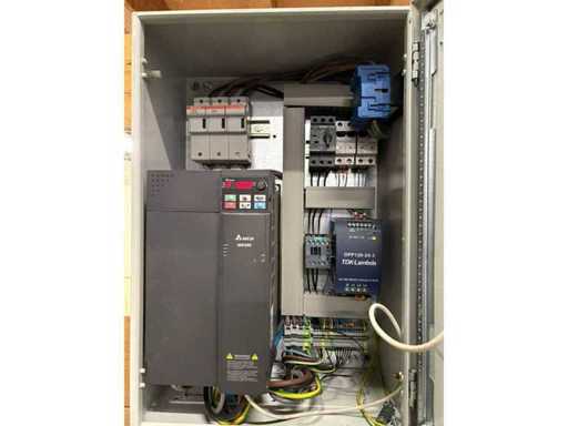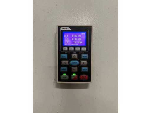 Produttore: ROUSELLE Numero: 10053-73 Tipo: B 20-40 Configurazione: Miscelatore verticale con albero centrale con disco dentato dispersante Motore principale: Motore AC IE2 – 22 kW – 1470 giri/min (50 Hz) Variazione di velocità: Inverter di frequenza Delta MS300 con console VFD-Cx remota Trasmissione: Motore + cambio verticale integrato Sollevamento pesi: Colonna verticale con sistema idraulico su/giù Centrale idraulica: Unità idraulica indipendente con serbatoio, motore elettrico e valvola di controllo Armadio elettrico: Involucro con disconnettore principale, alimentatore TDK-Lambda 24VDC e protezioni Siemens Ordine: Scatola a pendolo con controlli di arresto d'emergenza, avanti/indietro e sollevamento