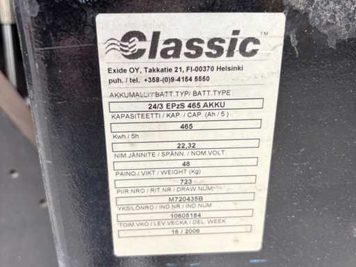 • Batteria: 48 V / 465Ah, costruita nel 2006