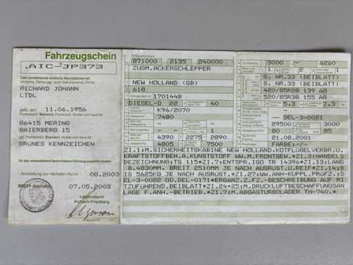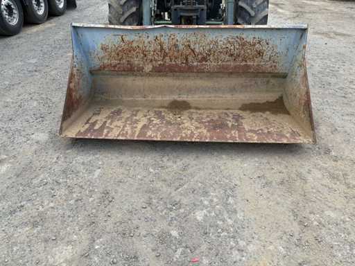 Il trattore è in condizioni solide e funzionali in base alla sua età. La cabina è completa, il sedile presenta pesanti segni di usura. Ruggine visibile in più punti, in particolare sulle sospensioni del parafango, sul paranco e sulla benna. I pneumatici sono ancora utilizzabili, ma incrinati a causa dell'età.