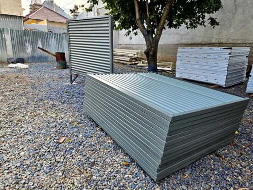 Pannelli di recinzione in lamiera ondulata 0,8 mm RAL 7023 grigio con dimensioni, larghezza 2000, altezza 1600, 6 pannelli 2000x1600 .caricamento gratuito