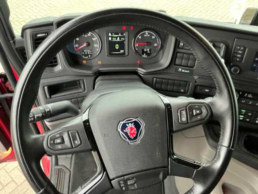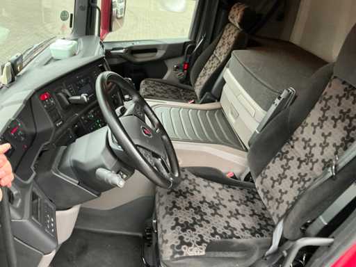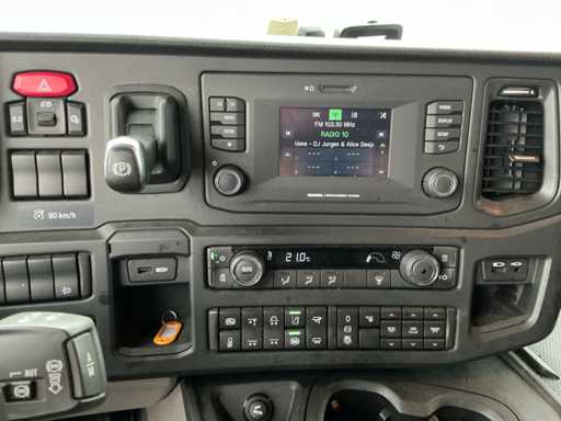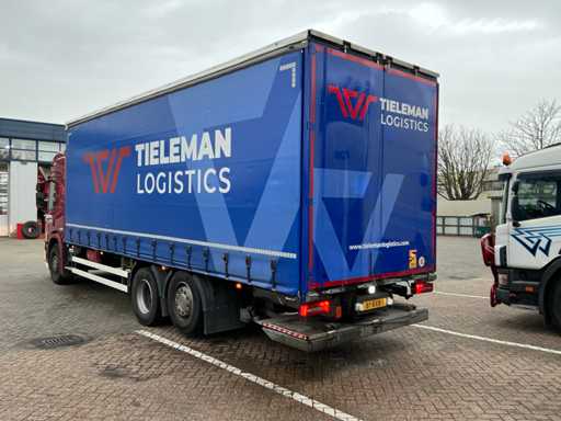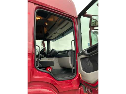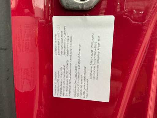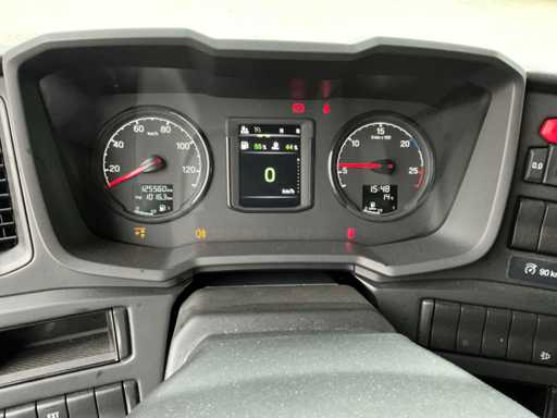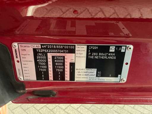 Massa massima tecnica del veicolo 27000kg, massa massima di assemblaggio 50000kg; passo 650cm; Il terzo asse è sollevato, dotato di carrozzeria a copertura Krone, Dhollandia, portellone pieghevole, climatizzatore/aria condizionata, riscaldamento del parcheggio, avviso di uscita di corsia, 1 letto, frigorifero, standkchel, finestrini e specchietti elettrici, inverter 24/230Volt