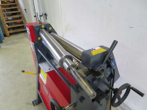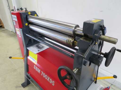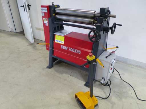 Piegatrice per lamiere con dimensioni speciali: - Capacità 700 x 4 mm - Flessione conica - Rullo superiore oscillante - Dispositivo di sicurezza linea di uscita di emergenza -Documentazione - 400V Larghezza foglio 700 mm Spessore della lamiera 4,0 mm Larghezza cavalletto 720 mm Diametro rullo superiore 95 mm Potenza totale richiesta 1,1 KW Peso della macchina circa 0,37 t Dimensioni circa 0,95 x 0,76 x 1,25 mm