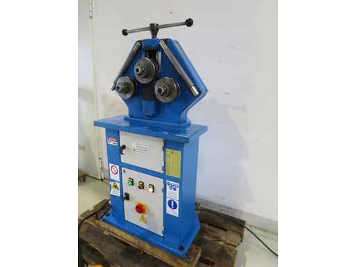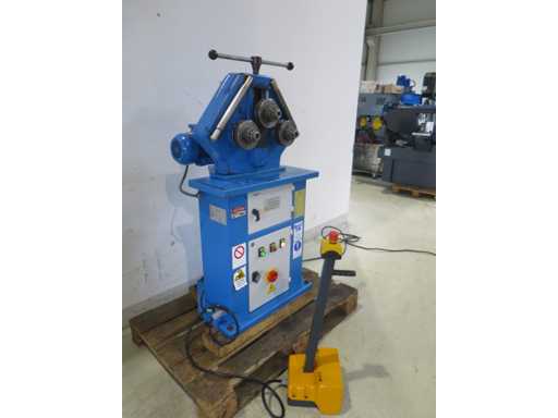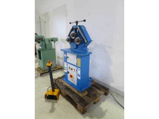 Curvaprofili con: - 1 set di rulli standard - 2 rulli sono azionati -Interruttore a pedale - Dispositivo di arresto di emergenza Materiale rotondo pieno 30 mm Materiale quadrato: solido 30 mm Acciaio piatto 50 x 10 mm Angolo acciaio 40 x 40 x 5 mm Diametro dell'asse 30 mm Diametro rullo - utensili 132 mm Potenza totale richiesta 0,75 kW Peso della macchina circa 0,19 kg Ingombro circa 1,2 x 0,8 x 1,4 m
