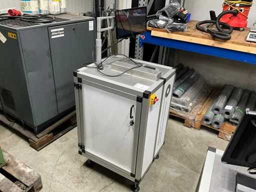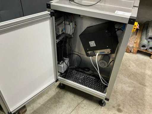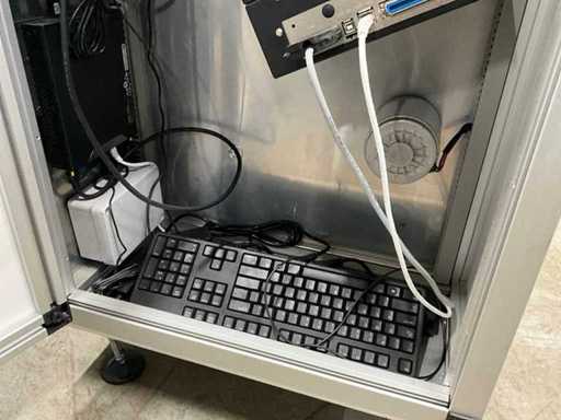 Dotato di: piedi regolabili in altezza, monitor, stampante per etichette Sato S84-ex,