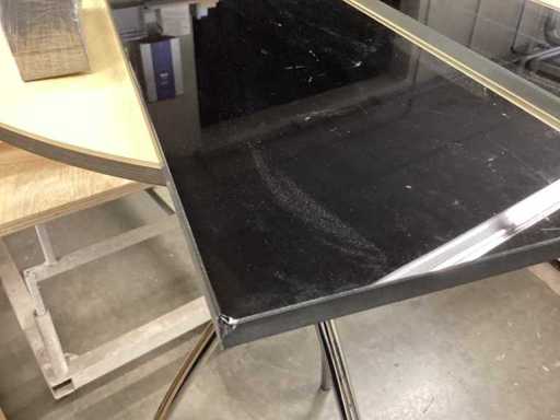Vetro, nero con supporti per le mensole. 1 pezzo: 80x20x1 cm, 1 angolo danneggiato vedi foto; 1 pezzo 60x15x1 cm